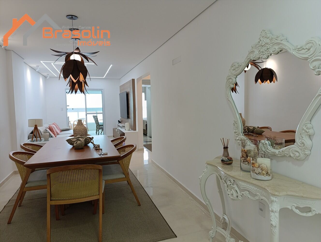 Apartamento Alto Padrão 3 suítes mobiliado e decorado frente mar em Praia Grande/SP.